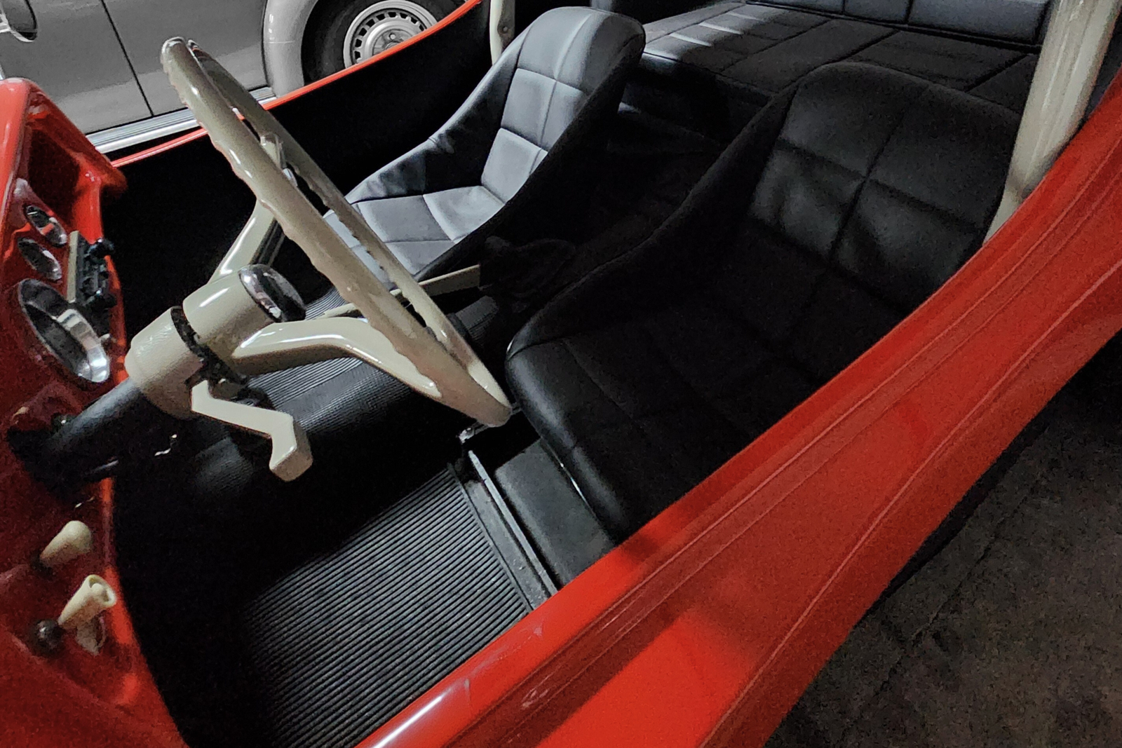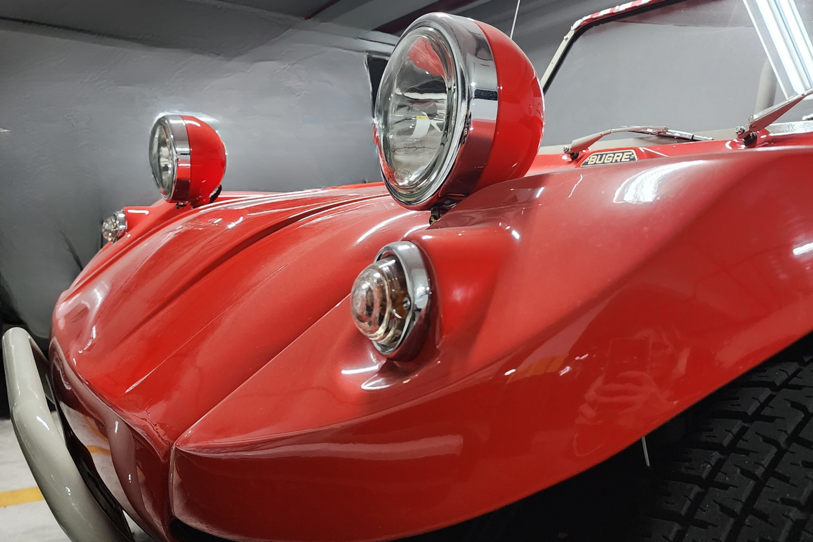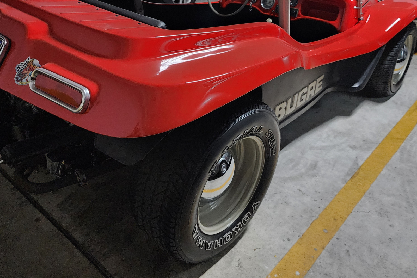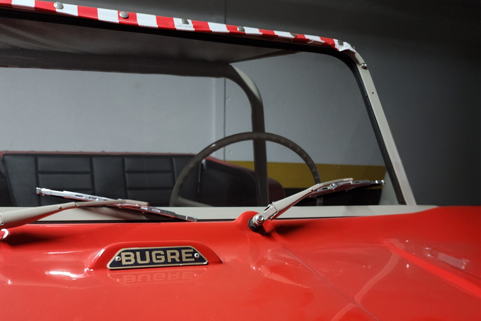 O conjunto preserva elementos icônicos, como bancos originais, painel original com mostradores originais, volante oficial de Fusca da década de 60, além de santo-antônio, retrovisores retrô e rodas no estilo Meyers Manx, que reforçam a estética clássica do dune buggy. O sistema de som está funcional, e o carro se apresenta íntegro em todos os aspectos.
