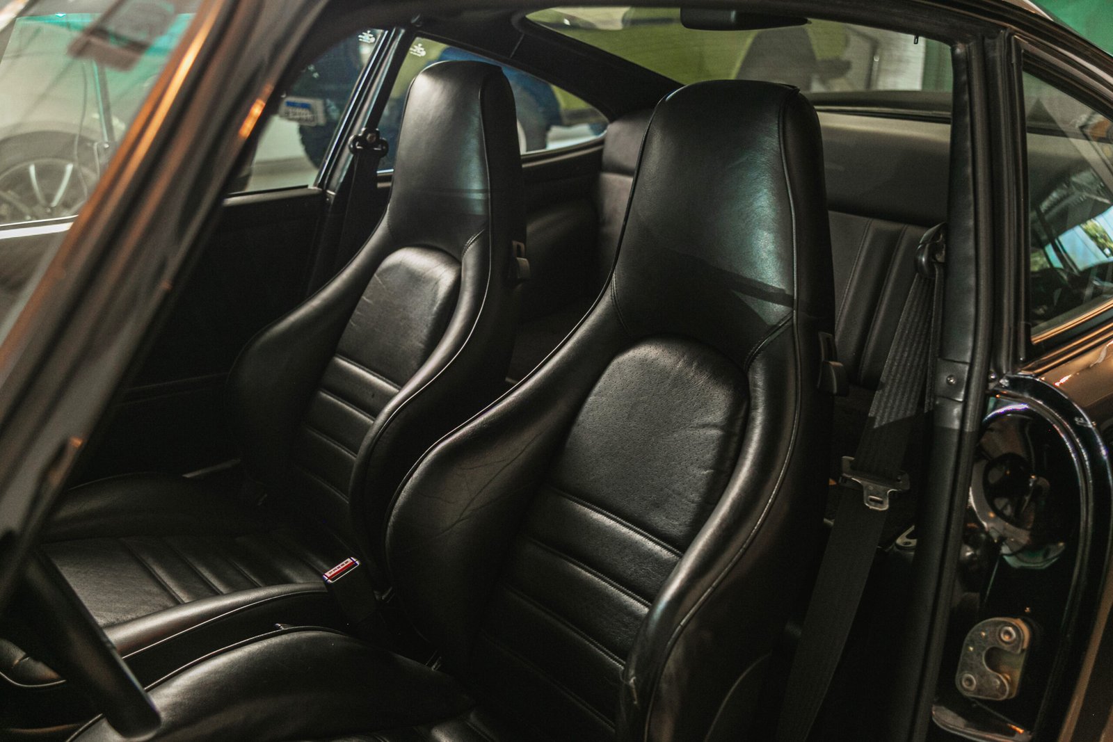 No interior, o acabamento em couro preto mantém a sobriedade original da marca, com comandos intuitivos, posição de pilotagem perfeita e detalhes que fazem jus ao emblema Porsche no volante.